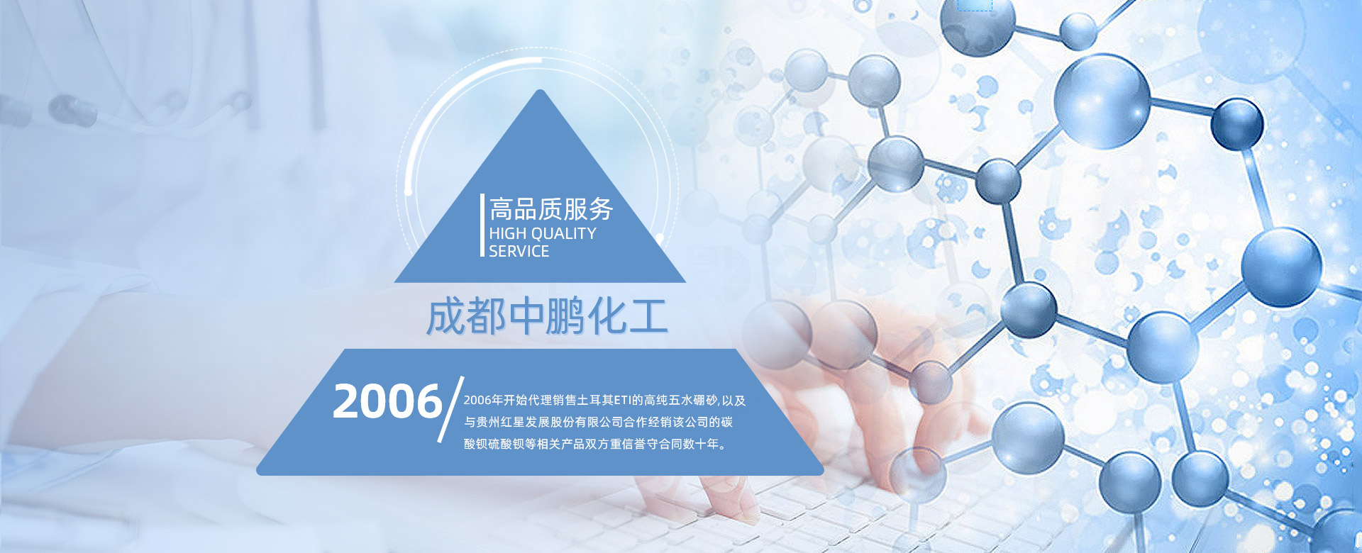 成都中鵬化工有限公司成立于2001年,位于成都市新都區(qū)木蘭木名商塑化城2棟11號,公司成立16年以來,一直堅(jiān)持為客戶提供各種基礎(chǔ)化工原料的產(chǎn)品。我公司長期對于玻璃、陶瓷、電鍍、洗滌、“硼砂”、“碳酸鋇”、“氯化鋅”、“氯化鉀”、“硫酸鋅”等基礎(chǔ)化工原料的開發(fā)供應(yīng)。 公司現(xiàn)在員工上百人,在全國擁有多個營銷體系和完善的售后服務(wù)體系,長期以來,通過為客戶提供各種基礎(chǔ)化工原料的產(chǎn)品,形成了良好的合作關(guān)系...
